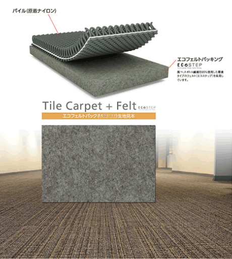 今日は心地よい歩行感を提供する、フェルトバックタイルカーペット