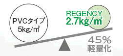 一般的塩ビバックタイルと比べ、約45%、軽量化しました。